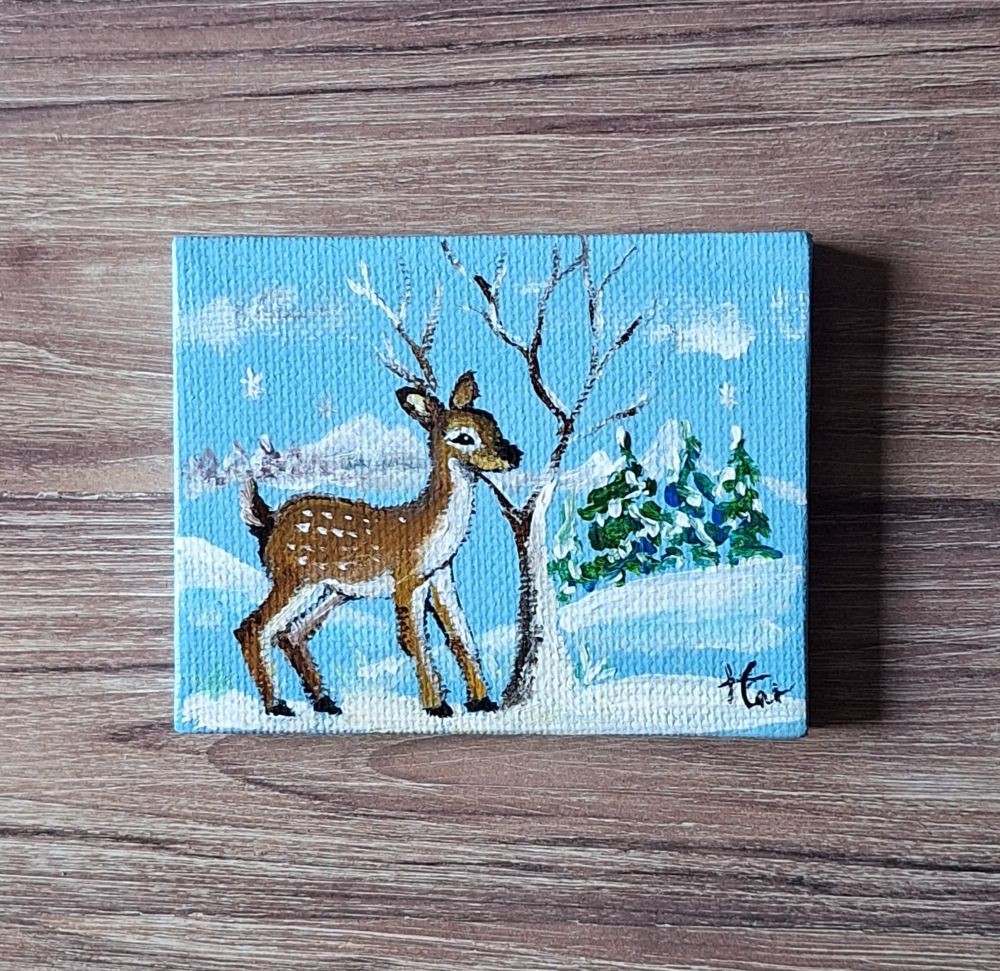 Mini peinture faon dans la neige